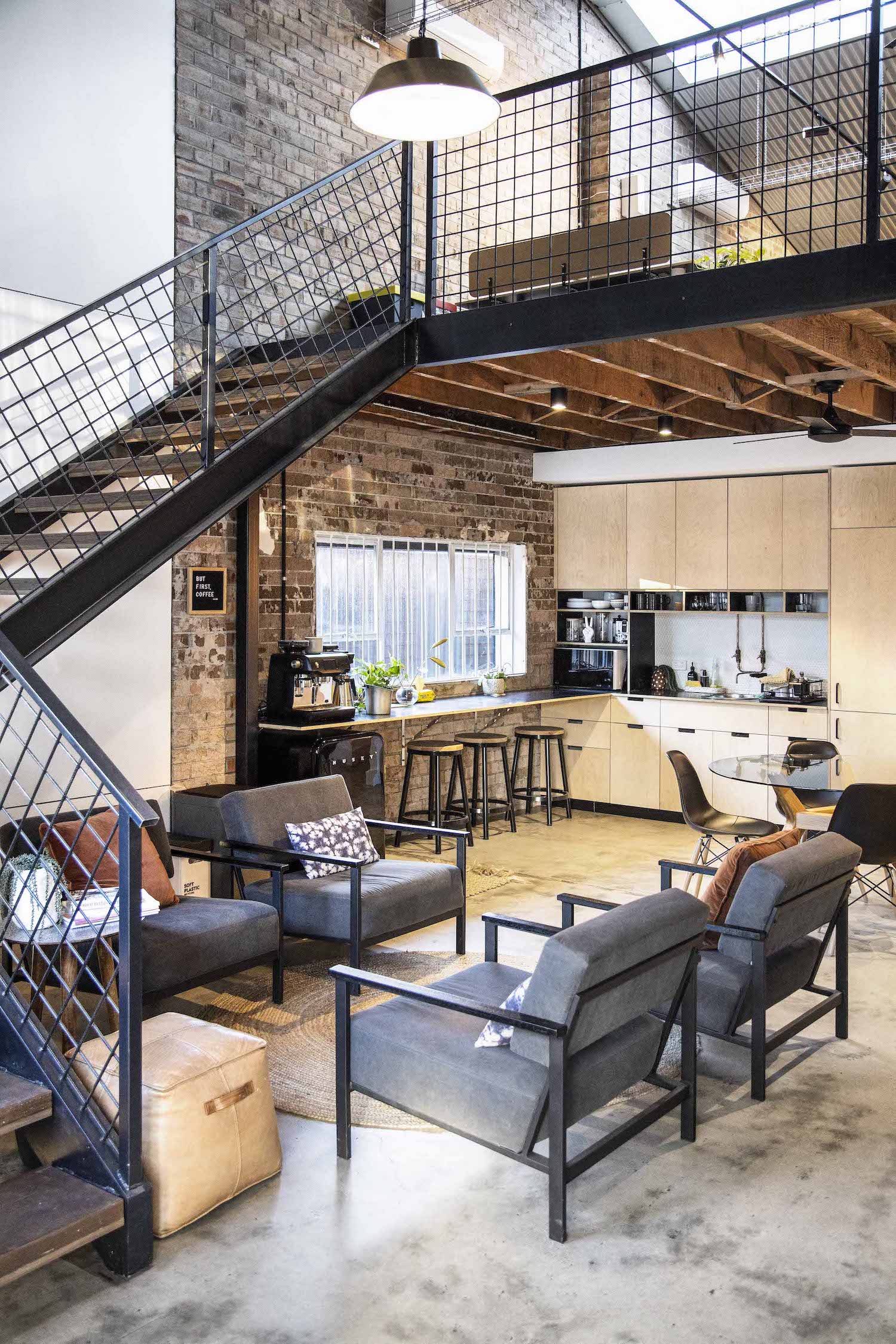 CawarraA renovation to an existing warehouse. This old, rundown factory was picked up by the brilliant Ironbark Architecture and ‘The Niche Space’ was created. This is now a coworking space for creatives and innovators, complete with warehousing, office sharing, podcasting/content creation studios and function room. An amazing space with a warm industrial theme featuring exposed brickwork, black steel, and clean white walls.